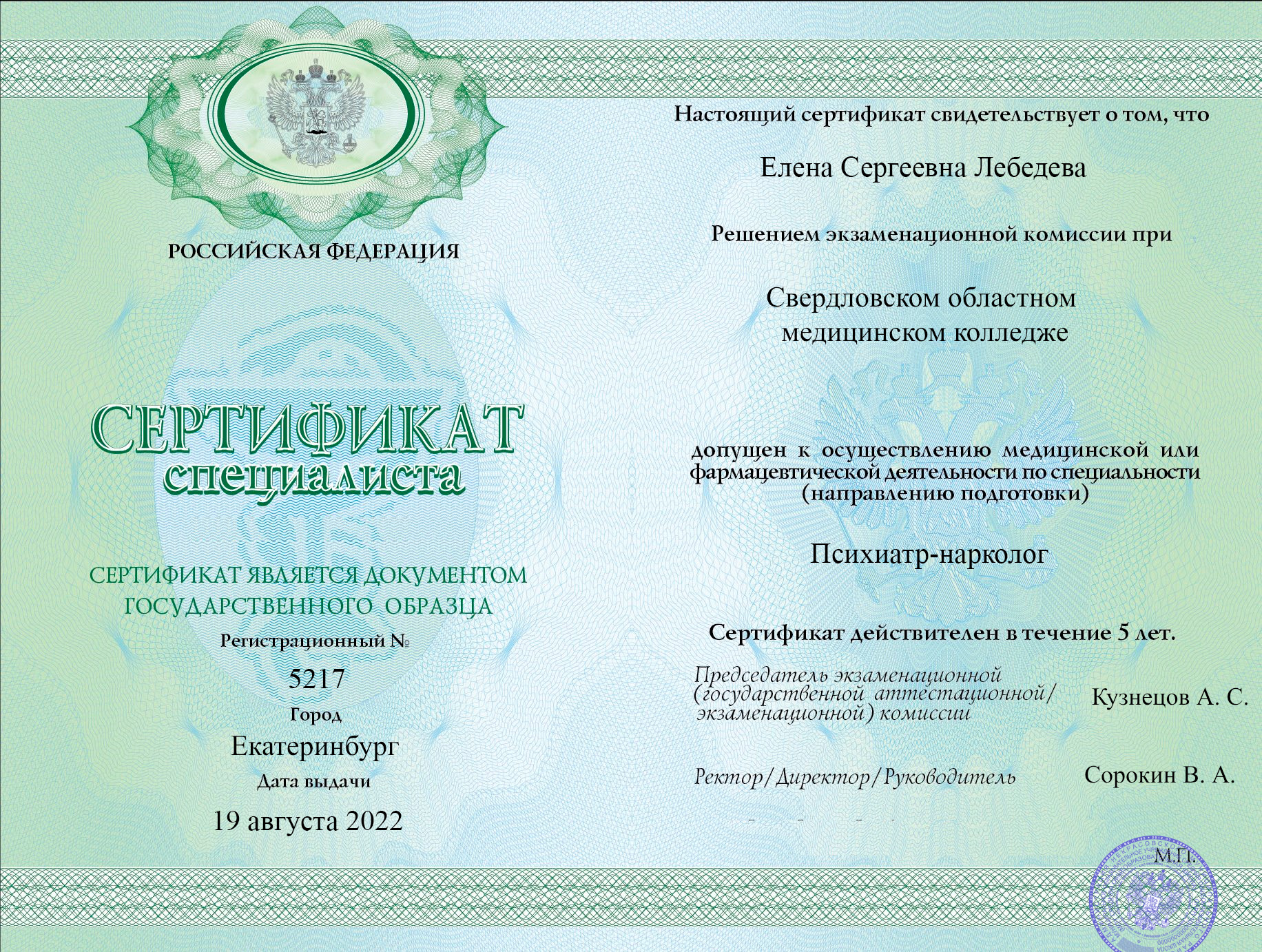 Елена Сергеевна Лебедева врач нарколог клиники доктора Стукаловой в Чигирях